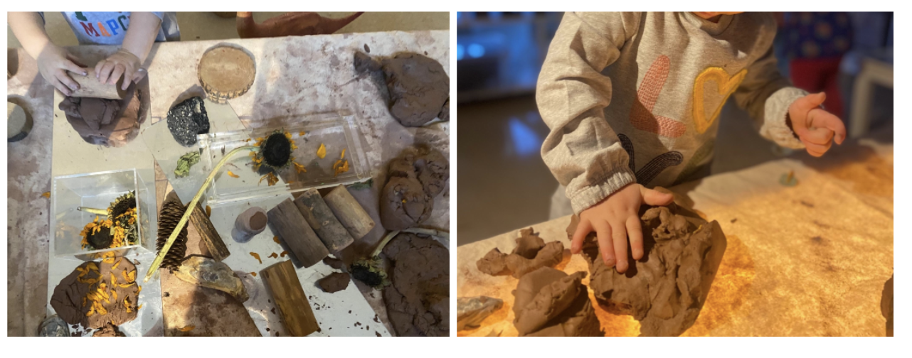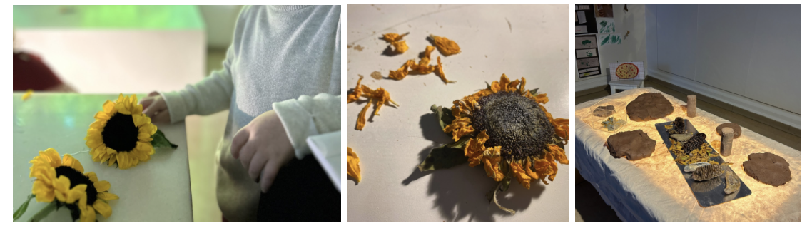 Initial activities that were set up with sunflowers and clay.